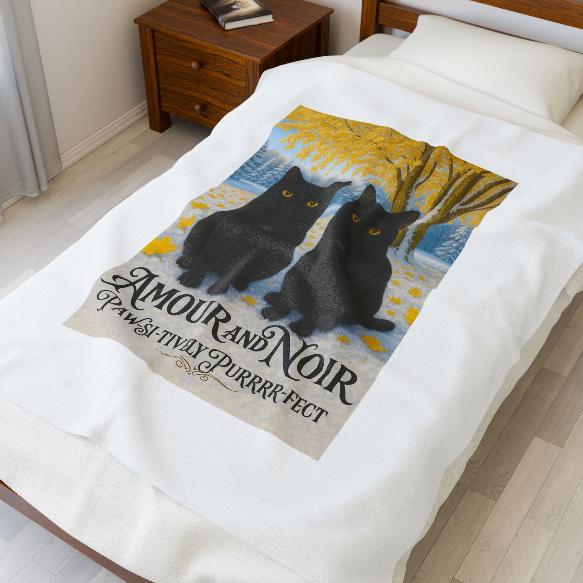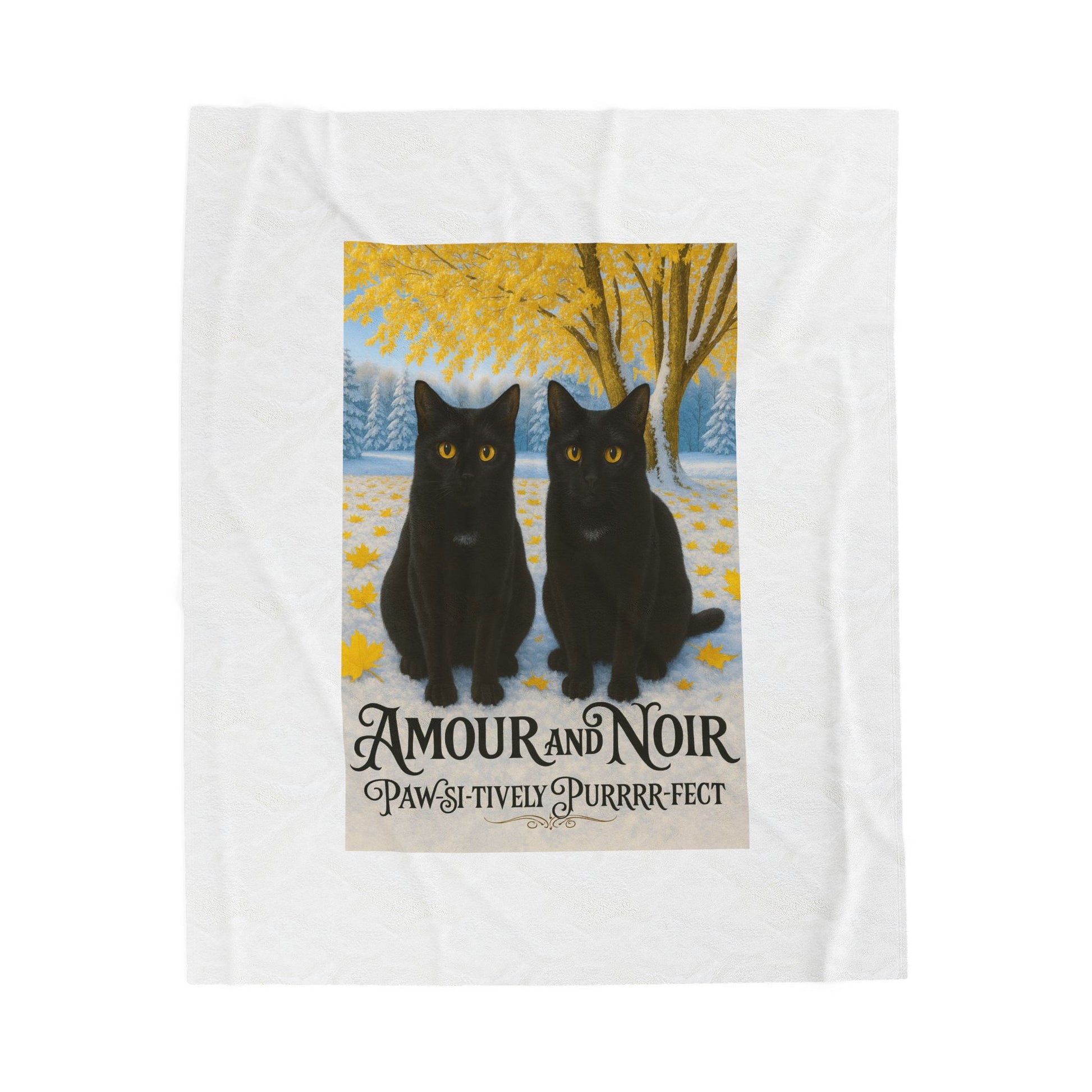 Amour and Noir Black Cats - Velveteen Plush Blanket