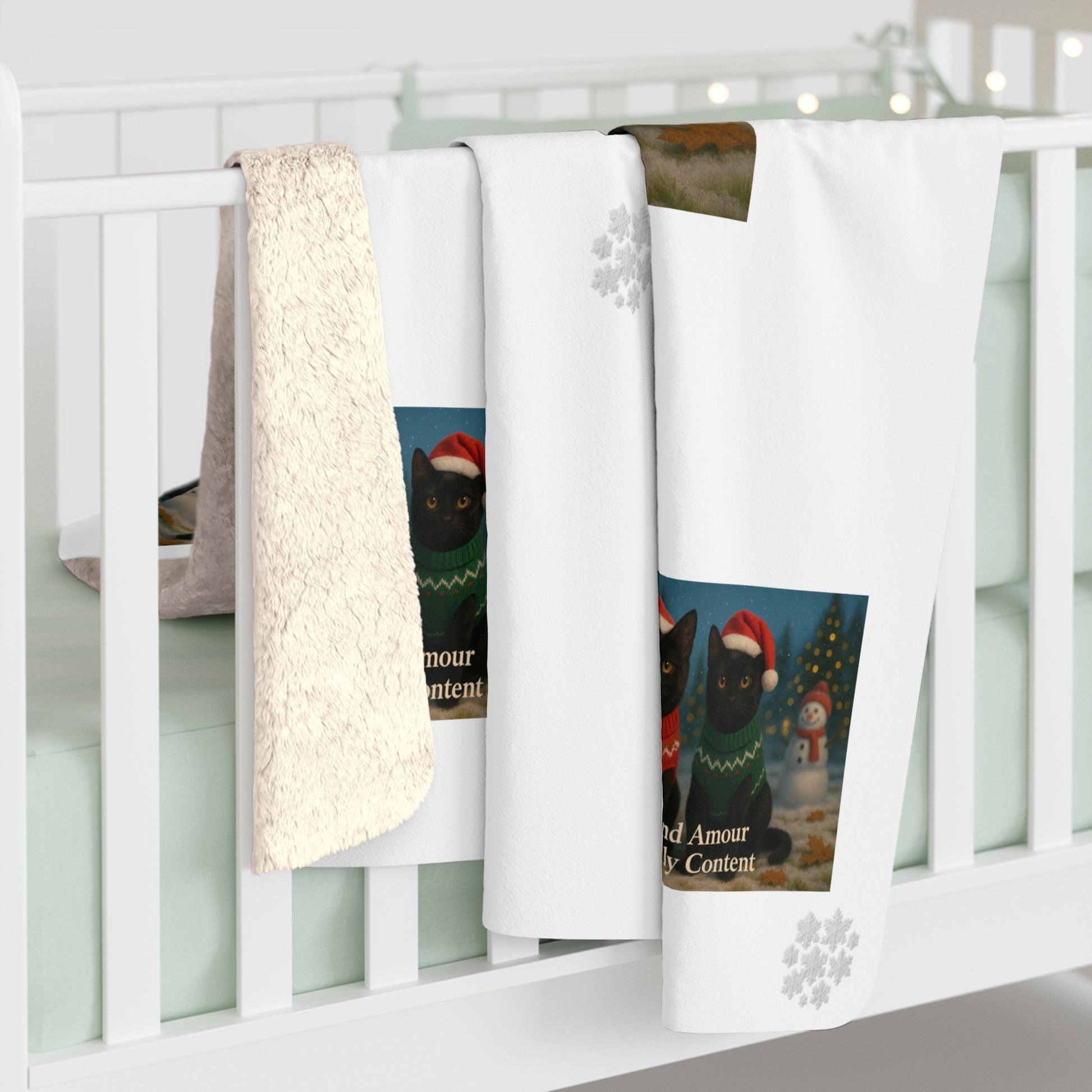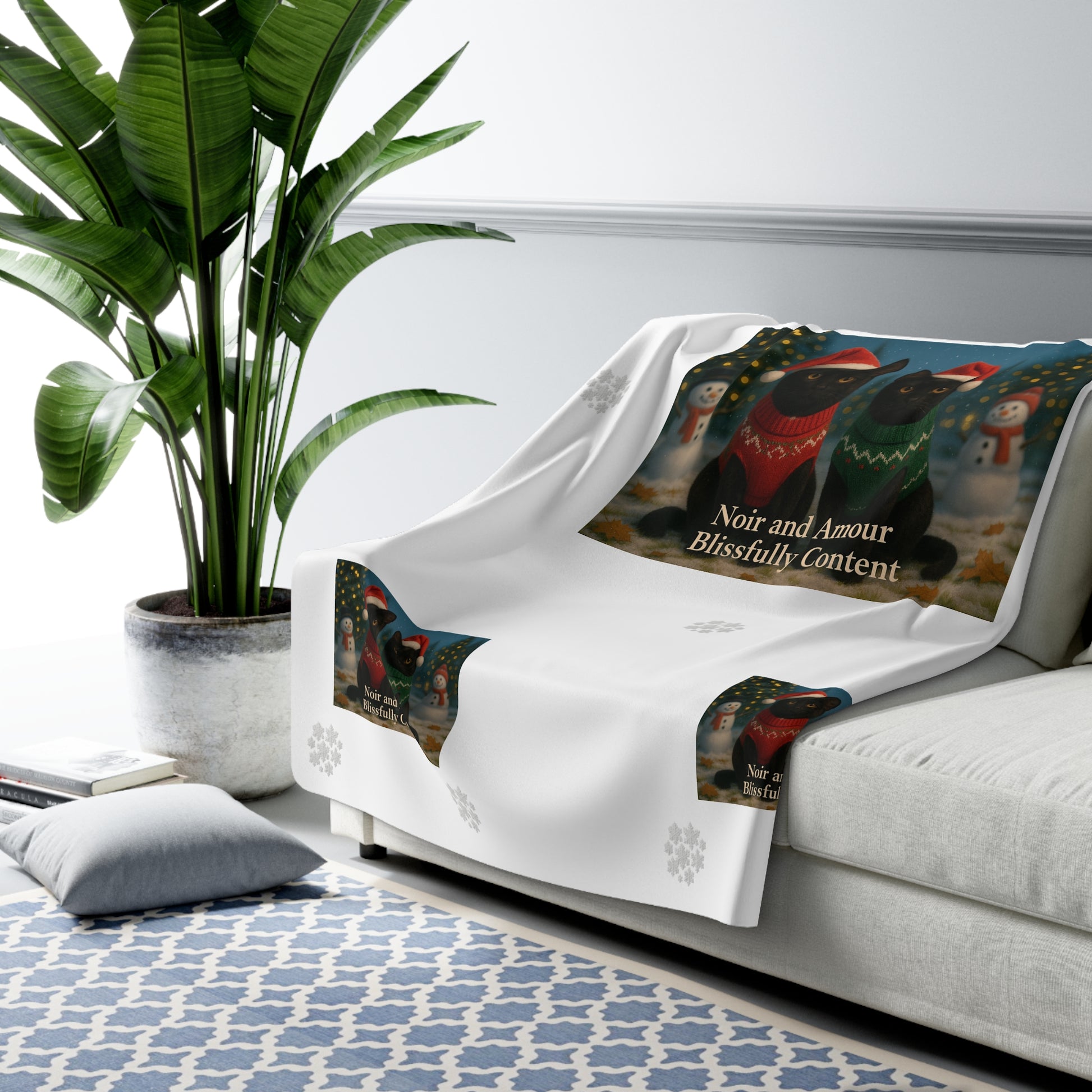 Christmas Black Cat Sherpa Blanket - Noir and Amour