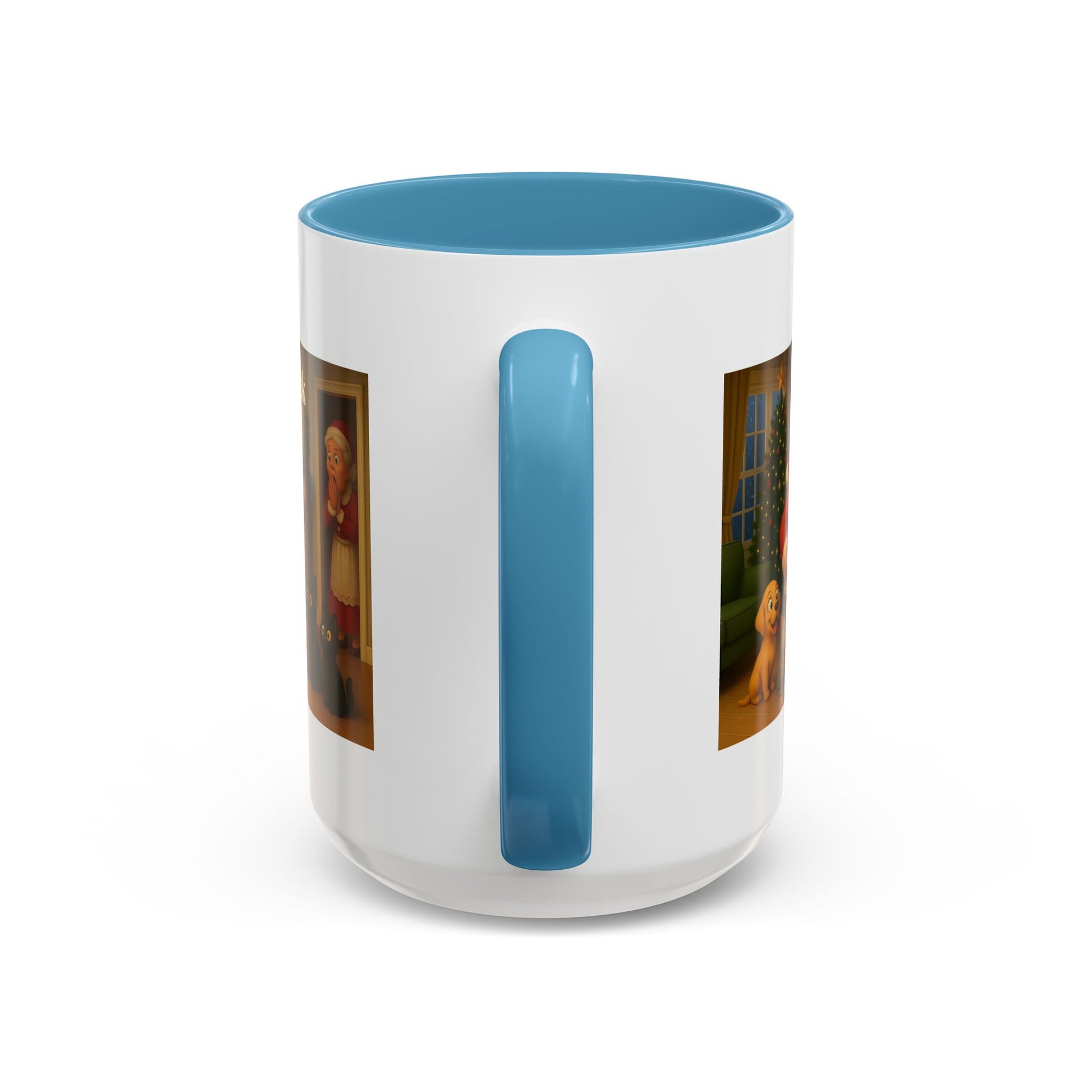 Santa’s got moves. This 3D “Dance Break for Santa” mug captures a cozy living room—tree lights twinkling, fireplace glowing, Alexa bumping tunes—while Santa twerks with a cookie and martini. Mrs. Claus is shocked, pets are delighted. A funny, gift-ready holiday mug for cocoa, coffee, or Secret Santa. Sip something warm and smile. This ceramic mug brings a cozy, playful holiday scene to your morning routine — a living room alive with a twinkling tree, a jolly Santa mid-dance, and curious pups watching the fun. The colored interior and handle add a cheerful pop that frames the artwork, while the glossy finish keeps colors vivid. Hold it by the comfortable C-handle, feel the warmth, and let a slice of festive cheer brighten a slow morning or an evening by the fire. Small moments become merrier when your mug looks this joyful.