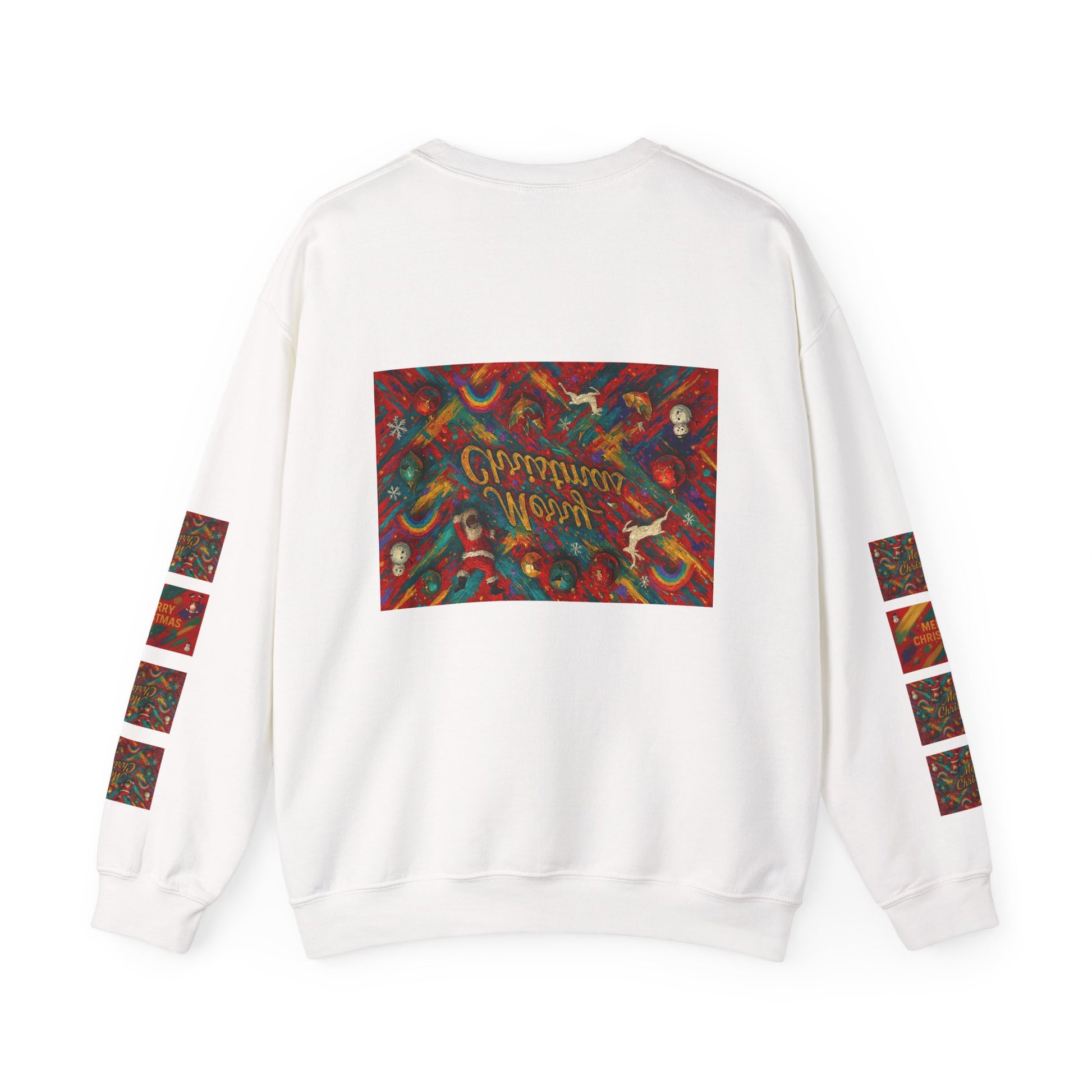 A cozy, vintage-inspired crewneck sweatshirt that brings warm holiday cheer to slow, joyful days. Soft yet substantial, the medium-heavy knit holds a rich, painterly print across the chest, back, and along each sleeve — a collage of ornaments, candy canes, and ribboned greenery with a hand-lettered message at the center. It feels like walking into a room full of holiday lights and familiar songs: gentle, nostalgic, and a little bit whimsical. Slip it on for tree-trimming evenings, neighborhood strolls to see decorations, or low-key family dinners. The relaxed crew fit layers easily over tees and flannels, while durable stitching and tear-away labeling keep it comfortable year after year.